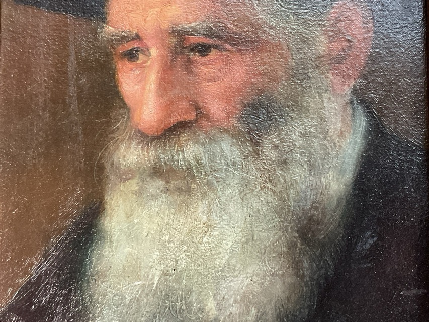 Oil on canvas, nineteenth century style bust portrait of a characterful bearded gentleman, in ribbed leaf moulded gilt frame. (6.5in x 8.75in)
