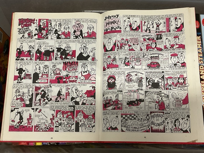 A collection of hardback Viz annuals from the late 1980s to 2023, with comedy cartoons, articles, letters, etc. (35)