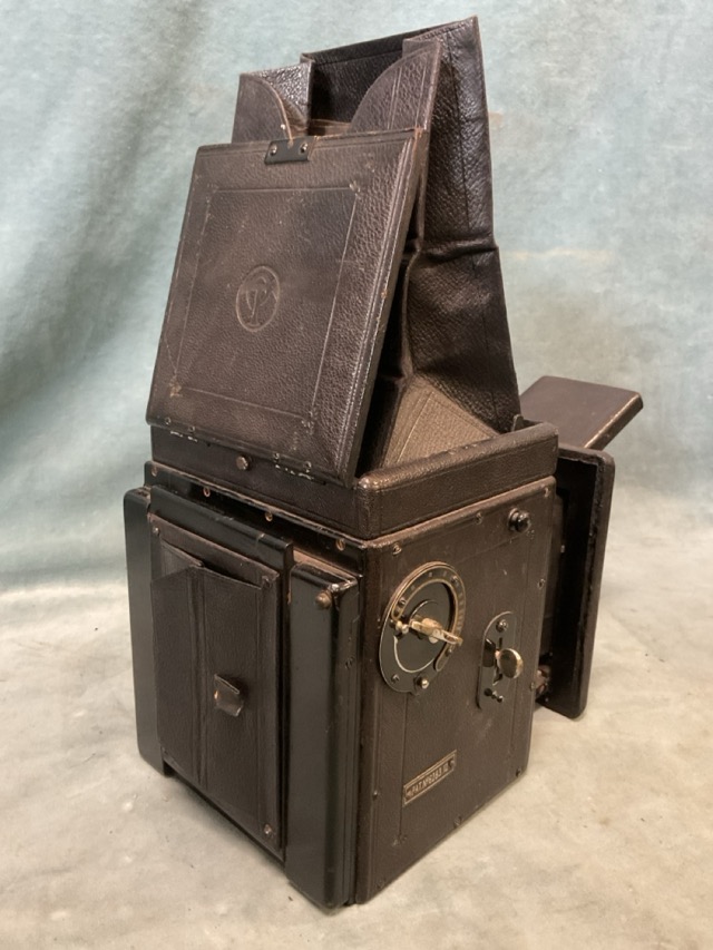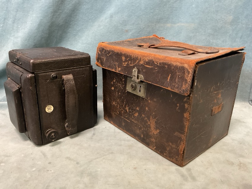 A 1920s leather cased Thornton Pickard Special Ruby Reflex camera, having developing & exposure instruction book, plates, etc.