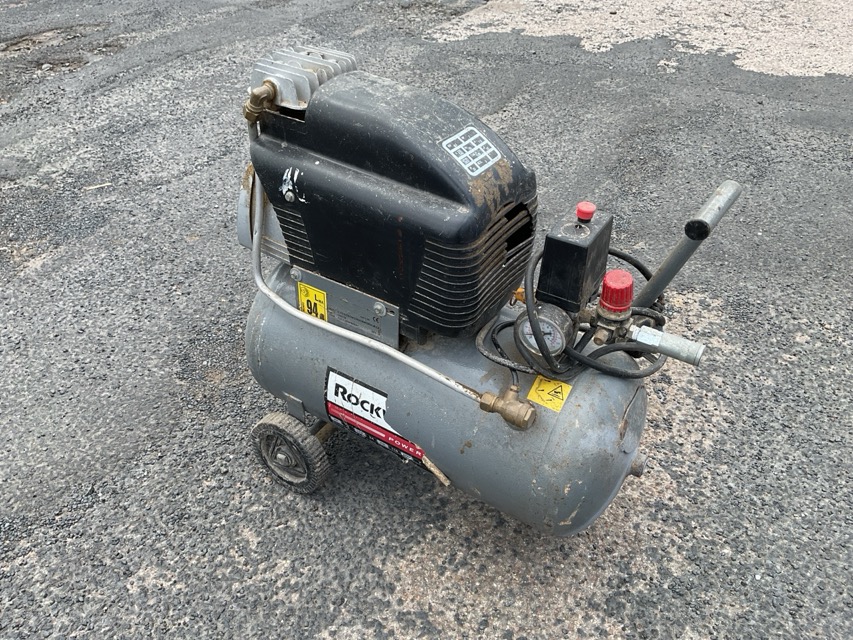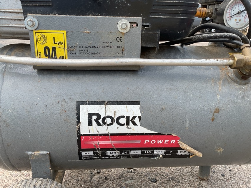 A Rockworth electrical compressor with cylindrical tank on trolley stand. (A/F)