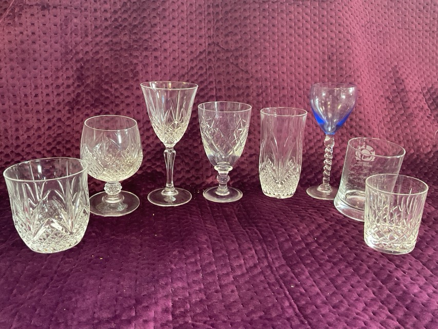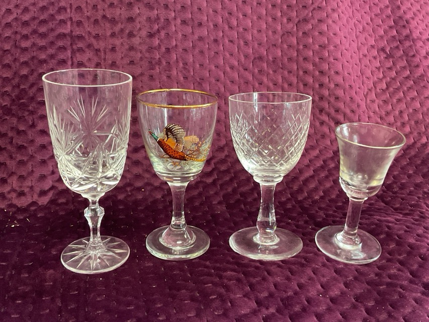 Miscellaneous drinking glasses - sets, brandy balloons, six pheasant enamelled wine, pairs, Edinburgh Crystal, tumblers, liqueur, etc. (A lot)