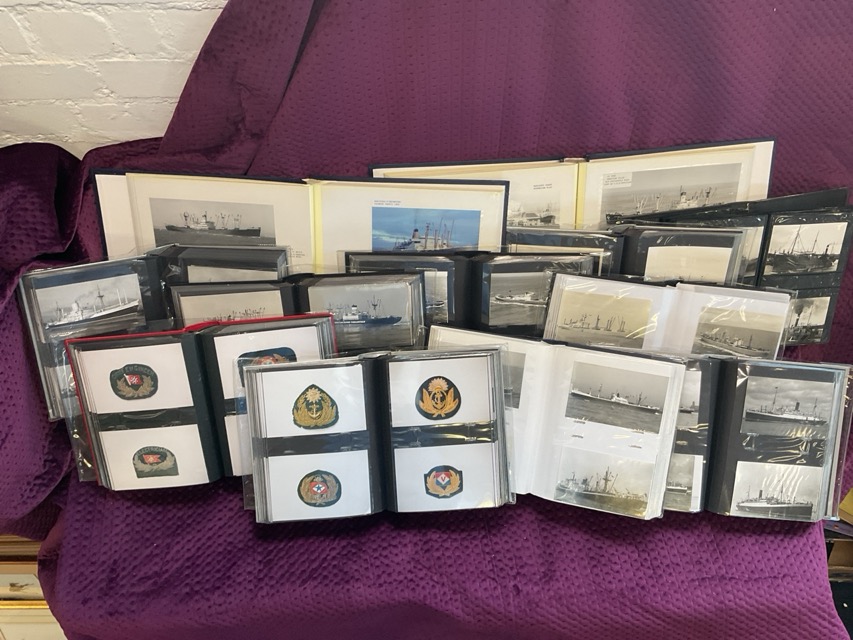 A lifetime collection of ship photographs contained in 21 albums - mainly black & white from the 50s, 60s & 70s, some postcards, some insignia photographs, etc. (over 3,750 photographs)