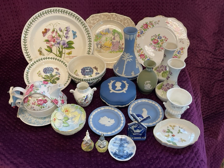 Miscellaneous ceramics - Portmeirion, mugs, Wedgwood jasperware, delft, a new cased floral teapot/cup/saucer, sandwich plates, a pair of Radford vases, Royal Albert, etc. (A lot)
