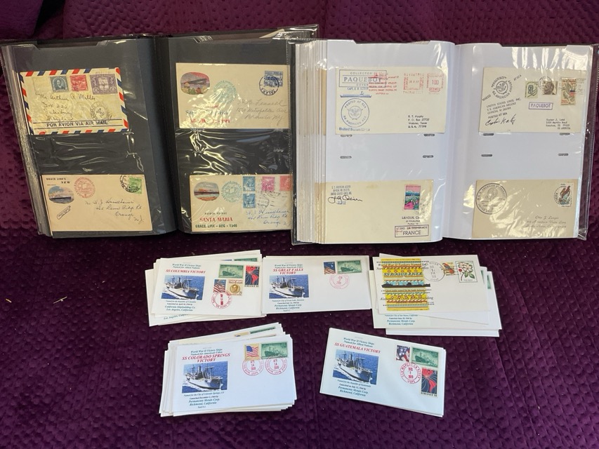 A collection of shipping first day covers contained in two albums, an international collection with 451 stamped envelopes; and an album containing matchbook covers and ephemera. (A lot)