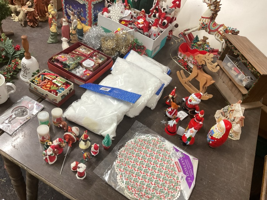 Miscellaneous Christmas decorations - Santa Claus & snowman figures, nativity sets, painted wood, fabric and tree decorations, glass baubles, paper decorations, etc. (A lot)