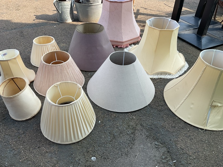 Ten miscellaneous standard and table-lampshades, - various sizes, pleated, silk, card, linen, etc. (10)