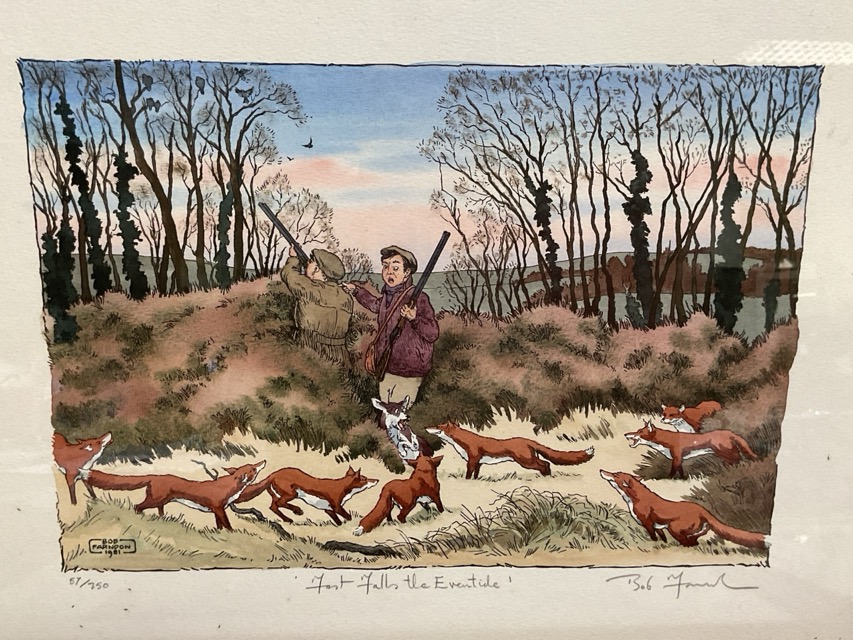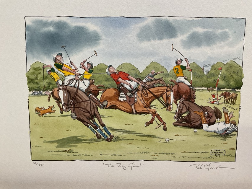 Bob Farndon, a set of amusing framed sporting prints, signed, titled and numbered in pencil on margins - shooting, polo, hunting, etc. (5)