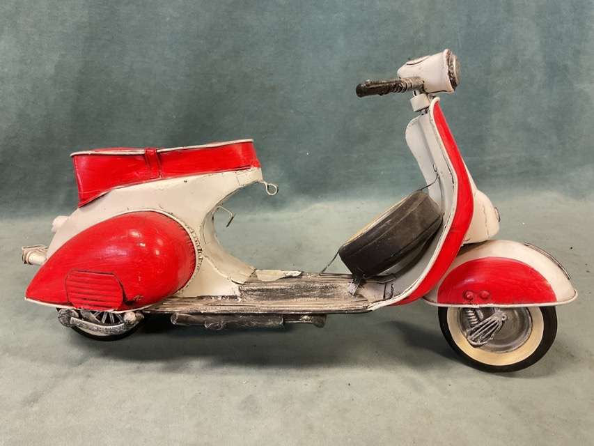 Two handmade tinplate model motor scooters - a 1959 Lambretta Li125 Series 1, and a 50s Vespa 125. (2)