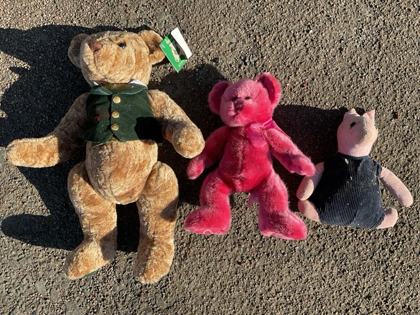 An collection of stuffed toys - Bears, Rupert, A Harrods Rodney, A Russberrie & Co Cherri, rabbits, dogs, A Merrythought donkey, Piglet, etc. (20)