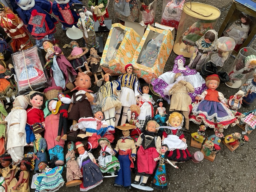 A collection of costume dolls - some boxed, composition, terracotta, cloth, various countries including boxed Spanish and Maltese, German rubber by Goebel, Indian cloth, Chinese porcelain, Brazilian, wool, Greek soldiers, a Peggy Nisbett piper, etc. (80)