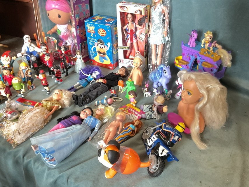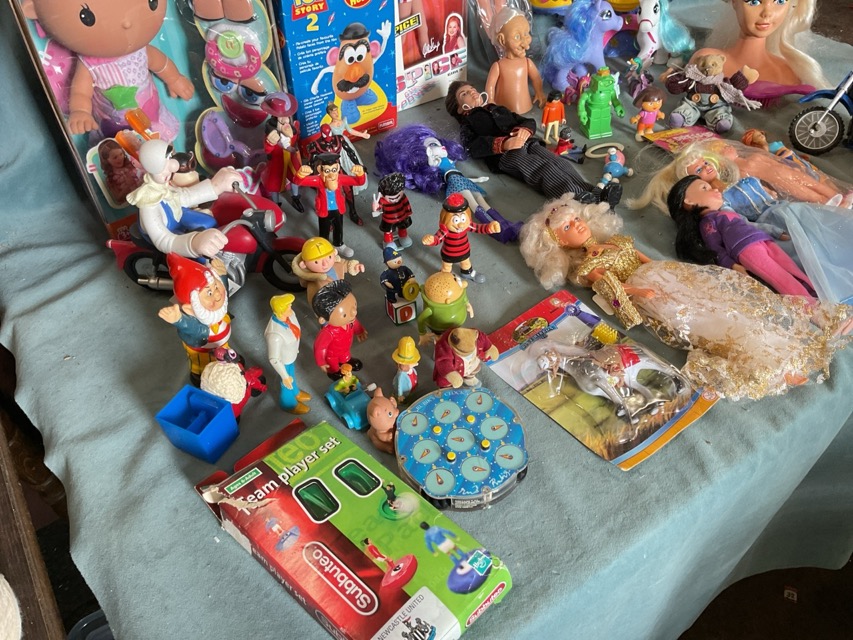A collection of toys - Scooby Doo, Wallace & Gromit, Disney, cartoon figures, boxed Parchy Dolly, Mr Potato Head, Geri Hailwell, Subbuteo Newcastle United team, fashion dolls, My Little Pony tree house & figures, a Rubiks Clock, etc. (A lot)