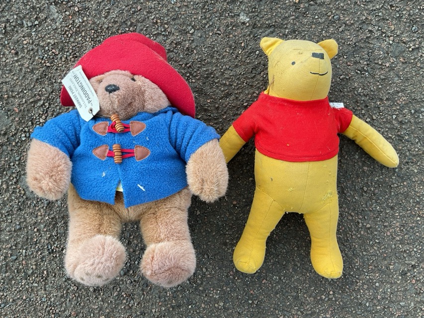 Miscellaneous C20th teddies - Winnie the Pooh, Paddington, Carebear, a Chiltern musical bear, a bear made from angora skin, Anne Wilkinson designs, Russ Berrie & Co, etc. (21)