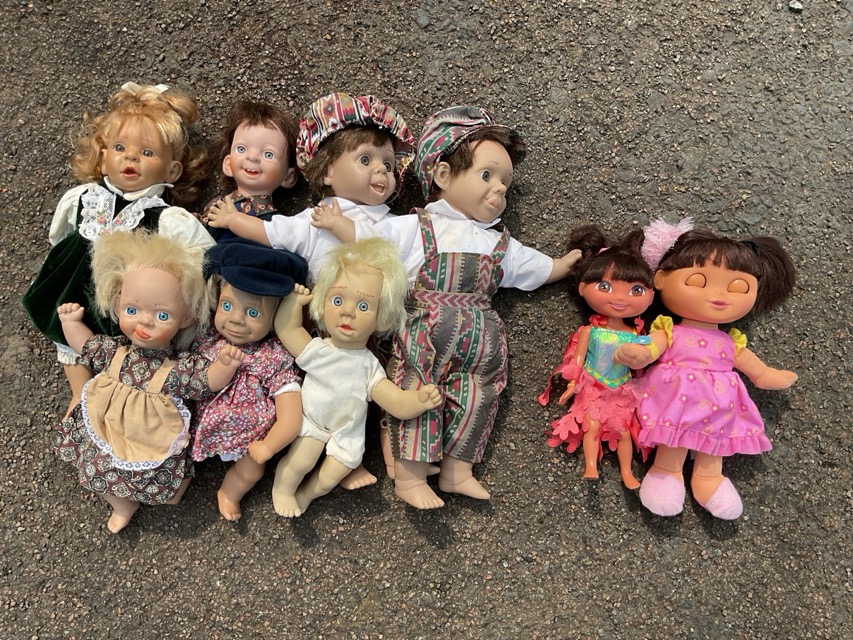 Miscellaneous dolls - a boxed Amy doll from Madame Alexanders Little Women, composition, glass eyed, D’Anton Jos, cloth bodied, jointed limbs, Cindy, Tomy, Dora the explorer, Pedigree, some with original clothing, etc. (A lot)