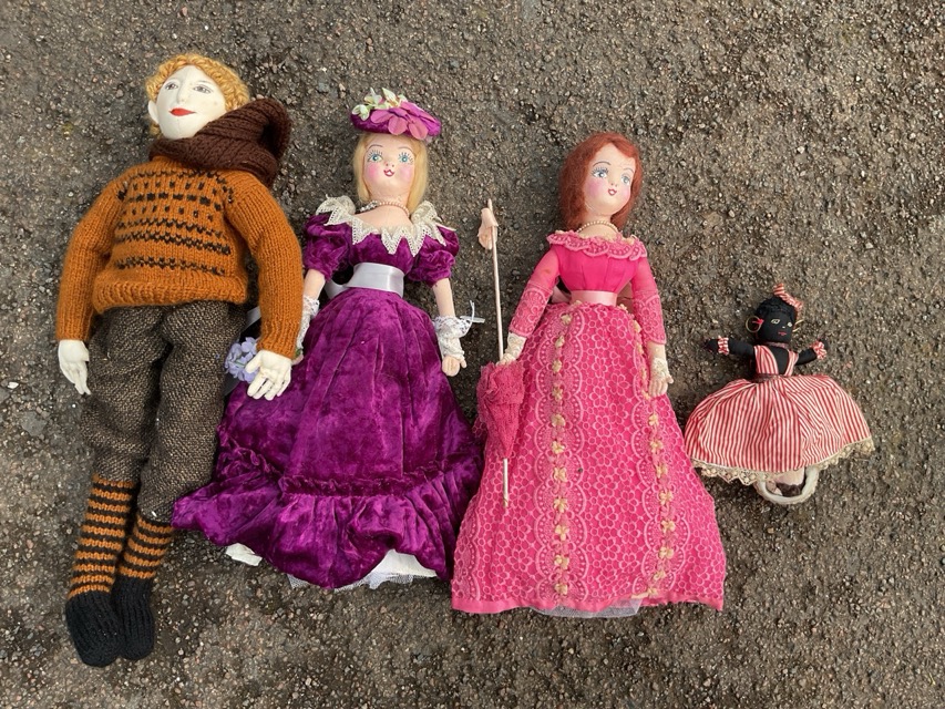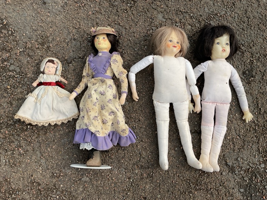 Miscellaneous dolls & soft toys - rag dolls, handmade, cloth bodies, a Fifi and the Flowerpots toy, artificial hair, wood, wax dolls with human hair, porcelain headed, a Betty Boop, a reversable golly, some in original clothing, etc. (A lot)