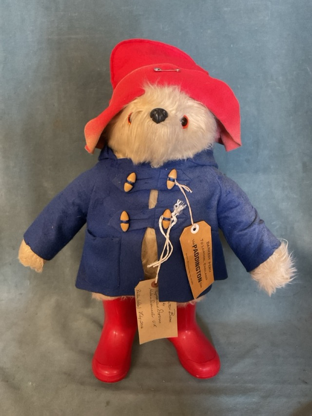 A collection of teddy bears - handmade large golden; Paddington with hat & tag, a gentleman johnny with fabric kits to craft a suit, a Winnie the Pooh, Chiltern brown, glass eyed, wood and wool stuffed, etc. (15)
