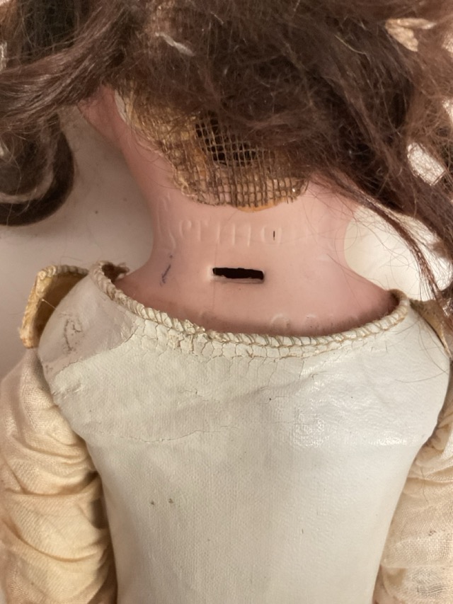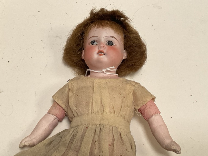 A German probably Armand Marseille porcelain doll, having articulated cloth body, sleep eyes and functioning voice box-marked Germany DRGM 20101; and an Armand Marseille 8/0 model doll with glass eyes, porcelain head & hands, having stitched body. (2)