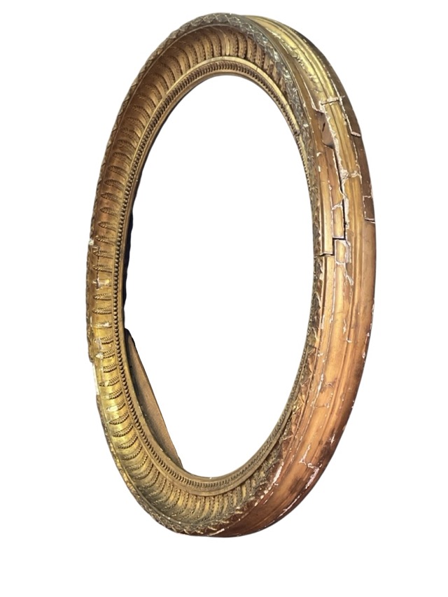 A Georgian circular gilt & gesso picture or mirror frame with acanthus and stiff leaf decoration with laurel mouldings. (29.5in x 29.5in)