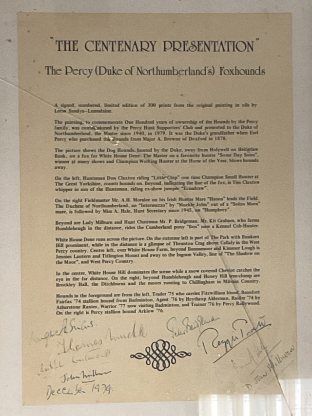 R Sandys-Lumsdaine, 1979 centenary lithograph depicting the Percy Hunt in the field, the numbered limited edition print signed by Duke Hugh and the artist, with accompanying framed & signed certificate detailing the picture. (2)