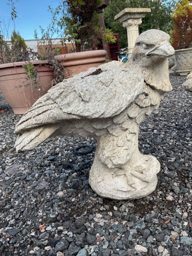 A pair of composition stone eagles perched on naturalistic plinths. (13in x 14.5in) (2)