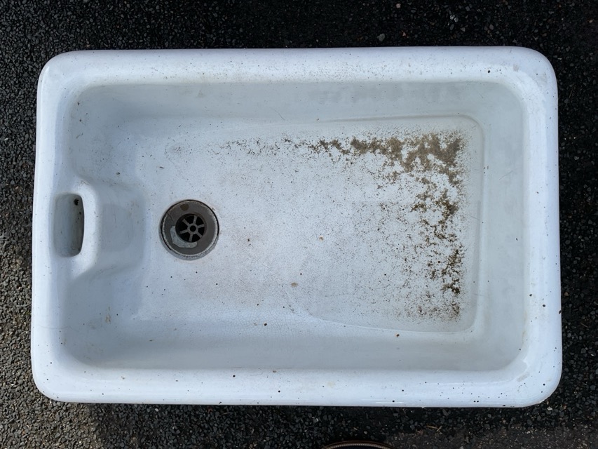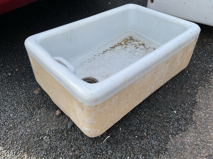 A small 2ft glazed stoneware belfast sink with integral overflow. (24in x 16.25in x 8.5in)