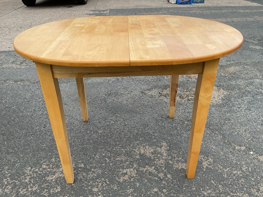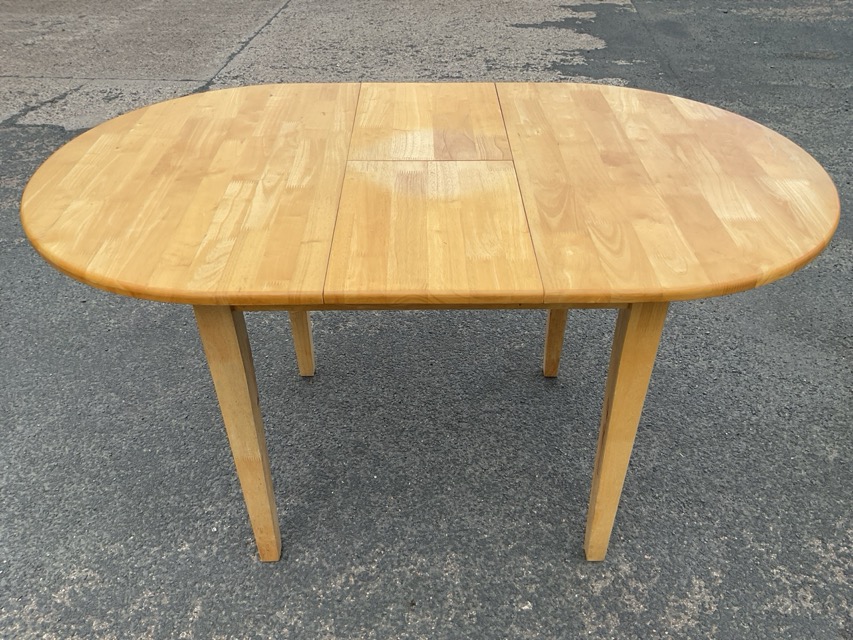 A pair of modern ramin tables with integral extending leaves, the rectangular rounded tops supported on square tapering legs. (39in x 30in x 29.75in) (2)