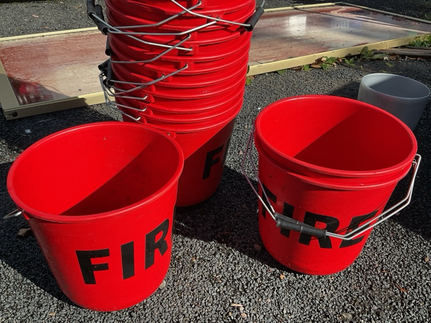 Eighteen modern tapering moulded fire buckets with swing handles. (10.25in) (18)