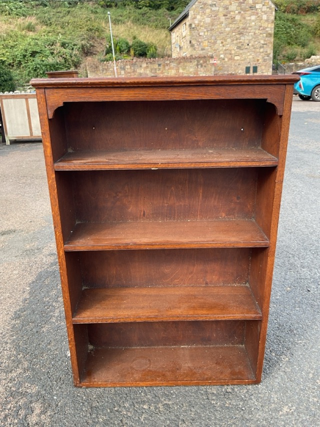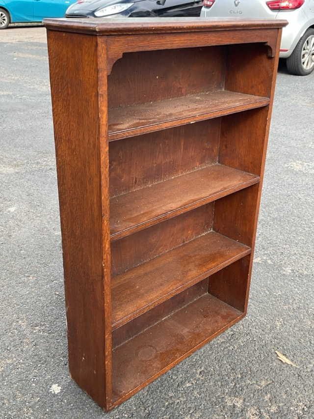 An Edwardian oak bookcase with rectangular moulded top above four open shelves. (24in x 7in x 36in)