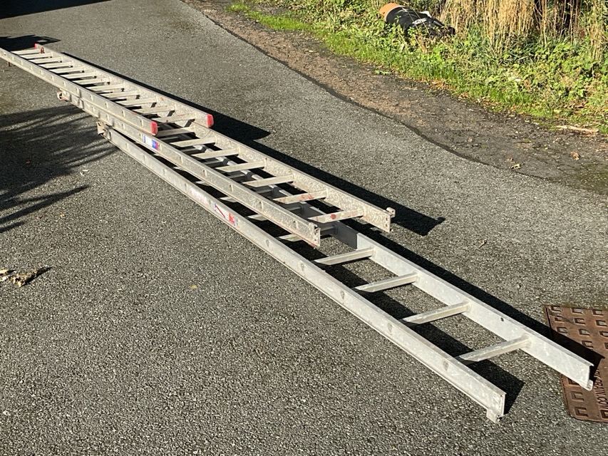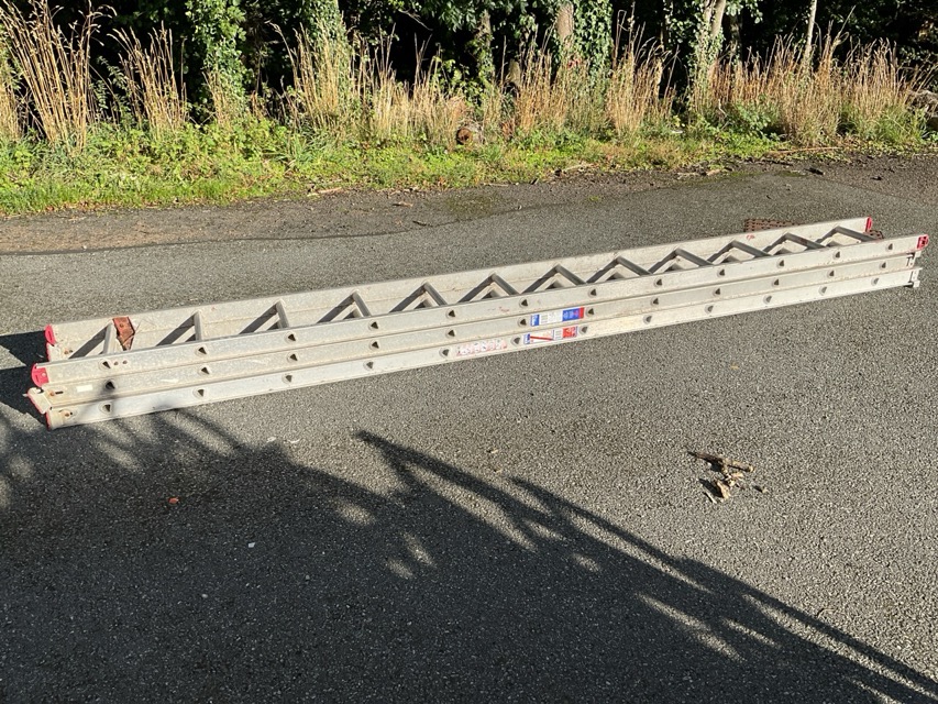 A three-piece extending ladder with ribbed rungs. (20ft 6in ext)