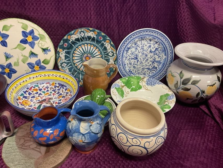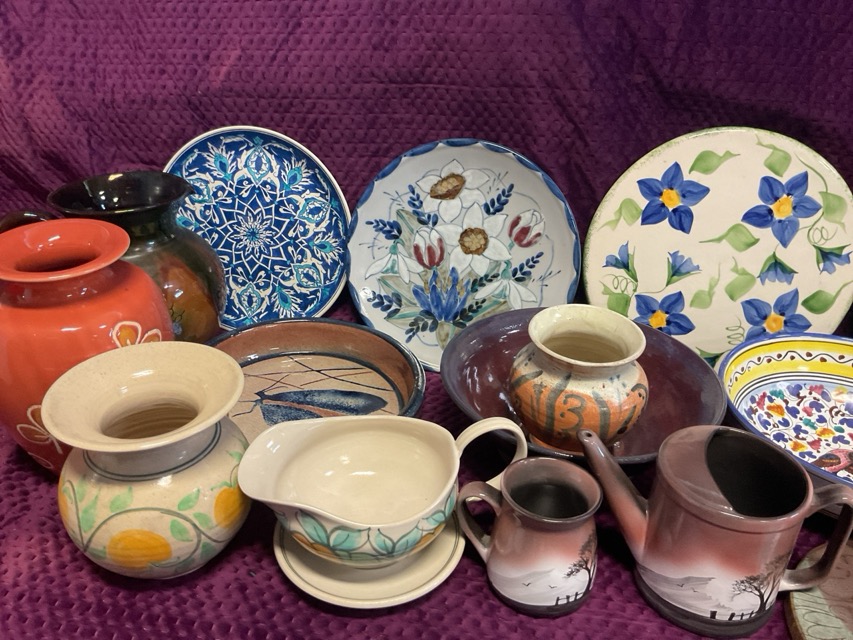 A collection of studio pottery - terracotta, R&H Boughton Somerset, stoneware, Belford Pottery, some Italian & Portuguese, handpainted plates & bowls, Lang of Germany, scragifo, Emery, Highland Stoneware, etc. (24)