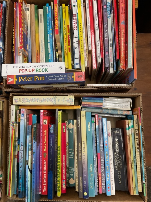 A collection of mainly contemporary childrens books - classics, illustrated, pop-ups, sets, annuals, fairy tales, jigsaw books, novels, animals, cartoons, etc. (182 approx)