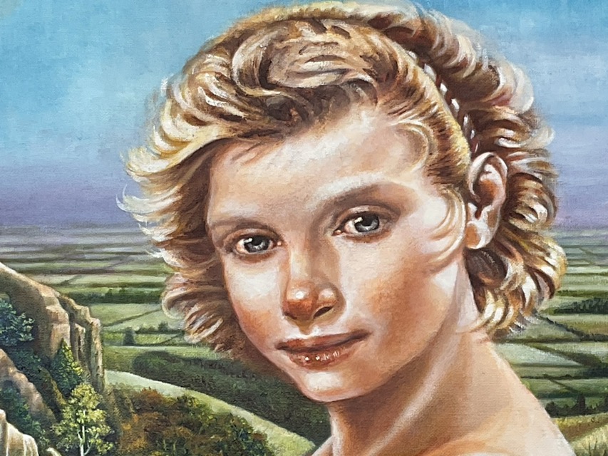 Manuella Norris, oil on board, portrait of a girl in renaissance costume; and three oil portraits of young girls. (4)