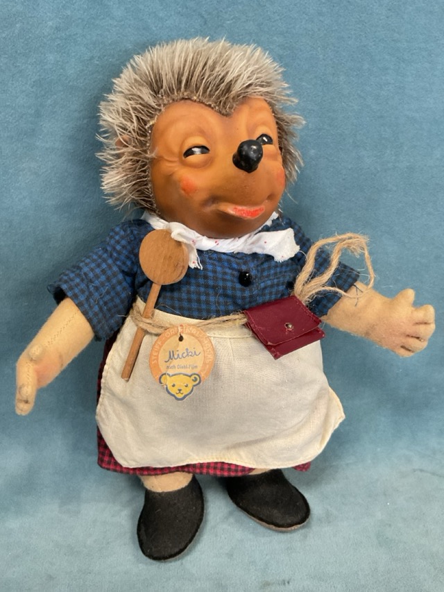 A pair of Steiff Mecki & Micki hedgehog dolls, with felt bodies and vinyl heads, one with label. (10in) (2)
