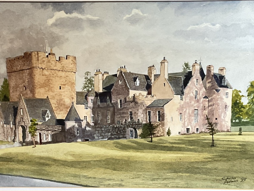 Charles Adams, watercolour, Drum Castle - Banchory, Scotland, signed, dated, mounted and framed. (21.5in x 13.5in)