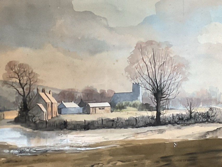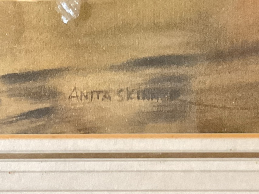 Anita Skinner, watercolour, autumn landscape with village, titled And the Clouds Roll Away - Luxton, Somerset on label to verso, signed, mounted and gilt framed. (21in x 14.5in)