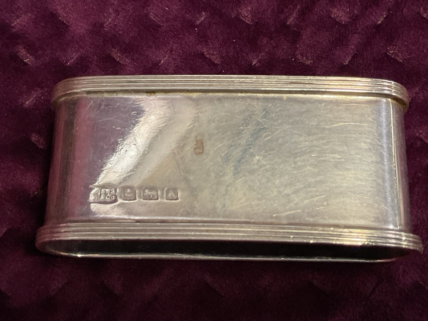 Four hallmarked silver napkin rings - a pair of Sheffield 1894 by Roberts & Belk, a single rectangular Birmingham 1925 by SW Smith, and a single Birmingham 1942 by John Vickery. (133.2g) (4)