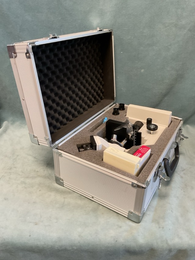 A cased unused Apex microscope with binocular view, lenses, adjustable table, slides, etc. (A lot)