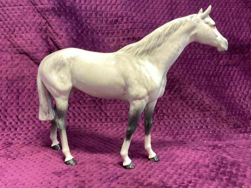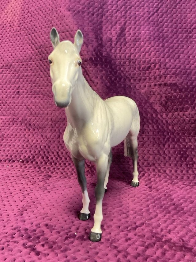 A large Beswick ceramic figure of a standing dapple grey stallion. (11.23in)