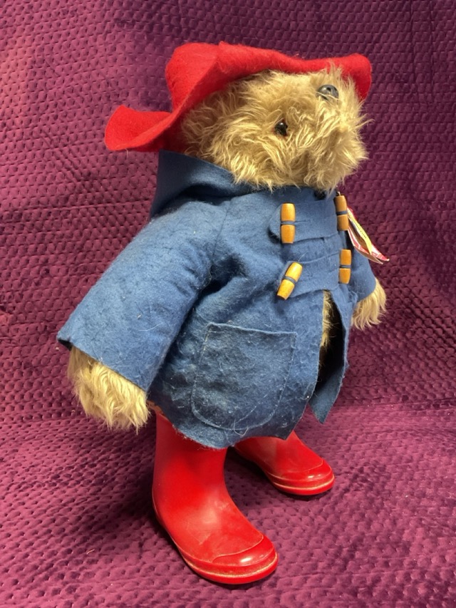 A Paddington Bear soft toy by Eden International Ltd, with felt hat and duffle coat, plastic wellingtons and original labels. (18.5in)