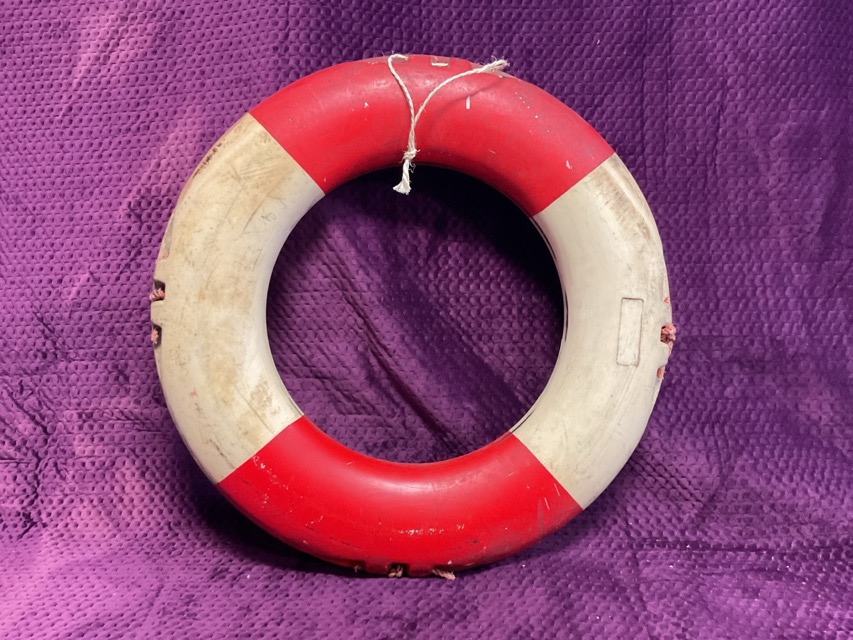 A 24in circular plastic Perry Lifebuoy in red and white stencilled with Stella North Power Station.