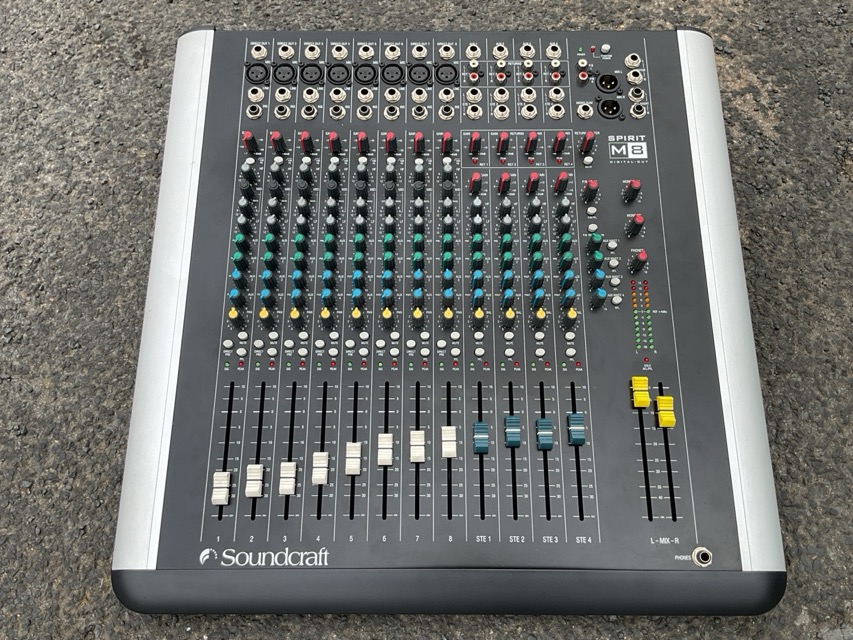 A cased Soundcraft digital mixing desk with eight Chanel’s, jack & canon inputs, etc - as new. (20in x 20in)