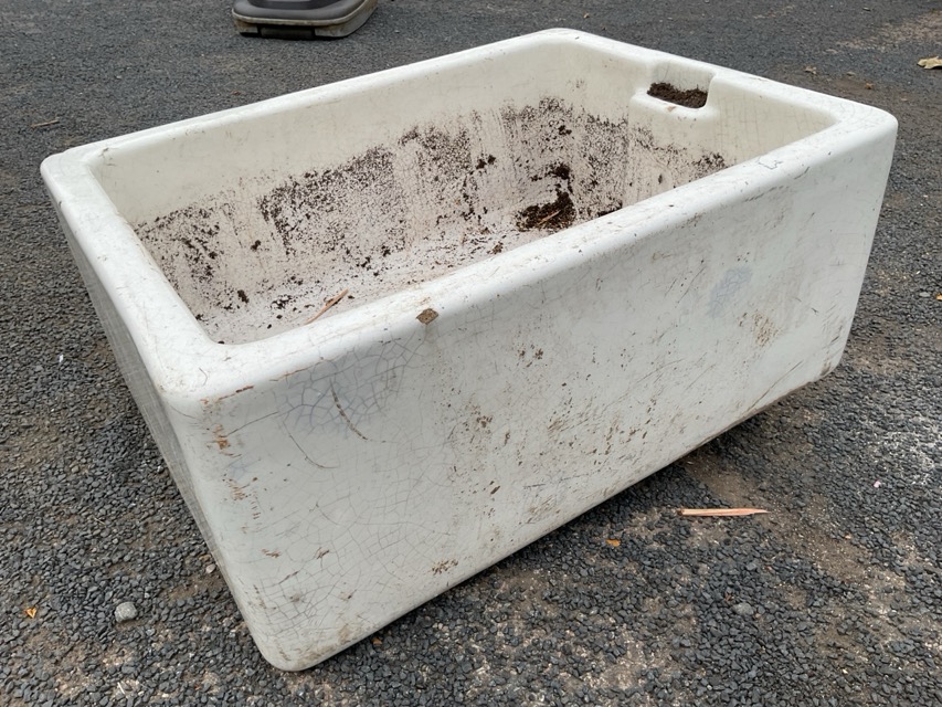 A rectangular belfast sink with integral overflow. (24.25in x 18.5in x 10in)