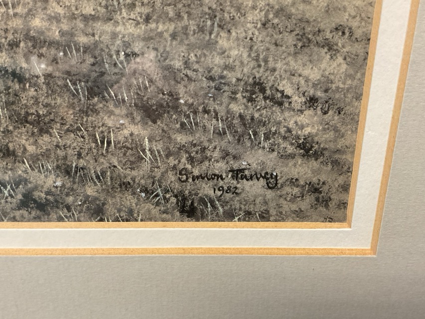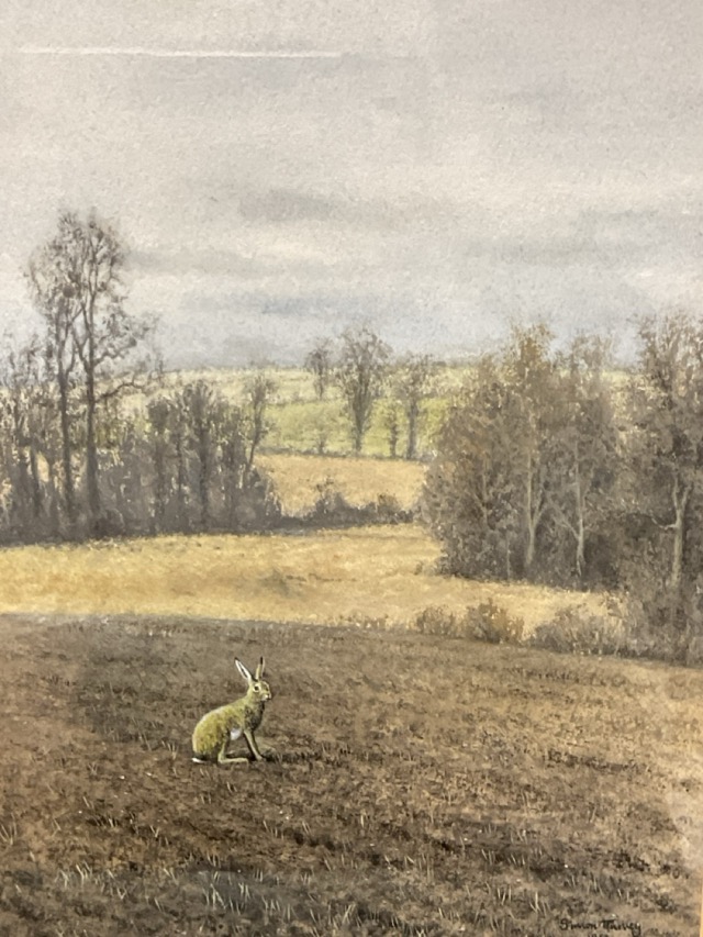 Simon Turvey, pastel, single hare in winter landscape, signed, mounted & framed. (8.5in x 12.25in)