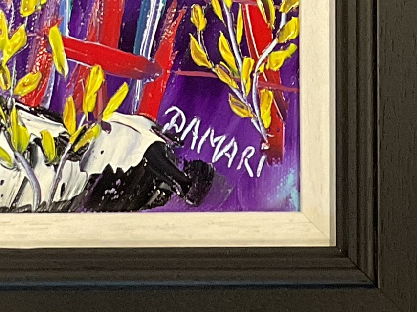 John Damari, oil on canvas, cottage landscape titled Moonlit Night at Joan’s Wee Croft, Ardfern, Argyll to verso, signed and framed. (15in x 15in)