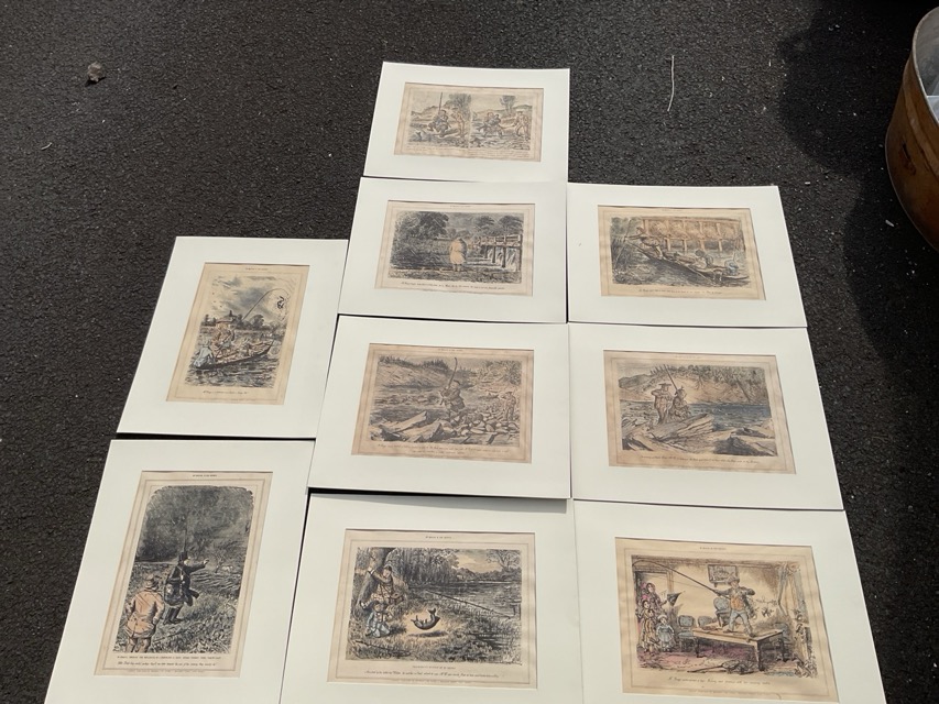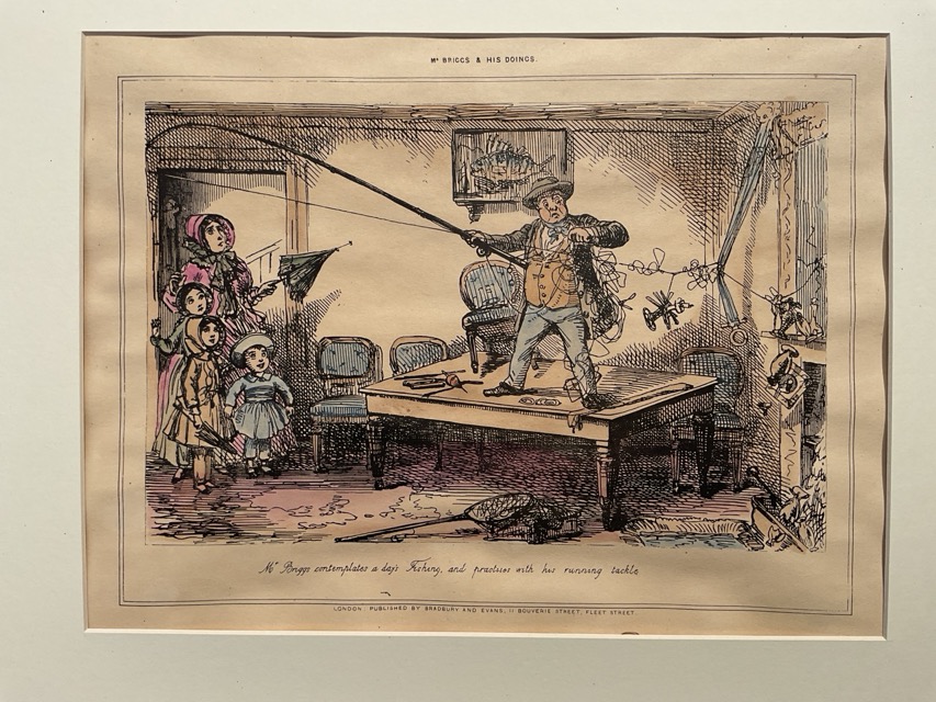 Mr Briggs & His Doings, a set of nine handcolured amusing fishing prints by Leech from the Bradbury & Evans series, all mounted ready for frames. (14in x 10.25in) (9)