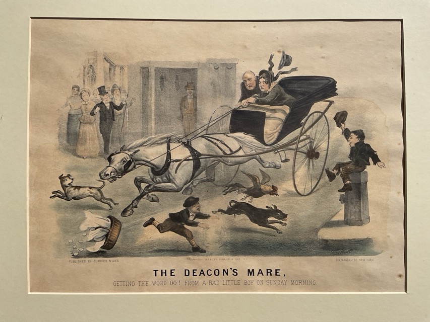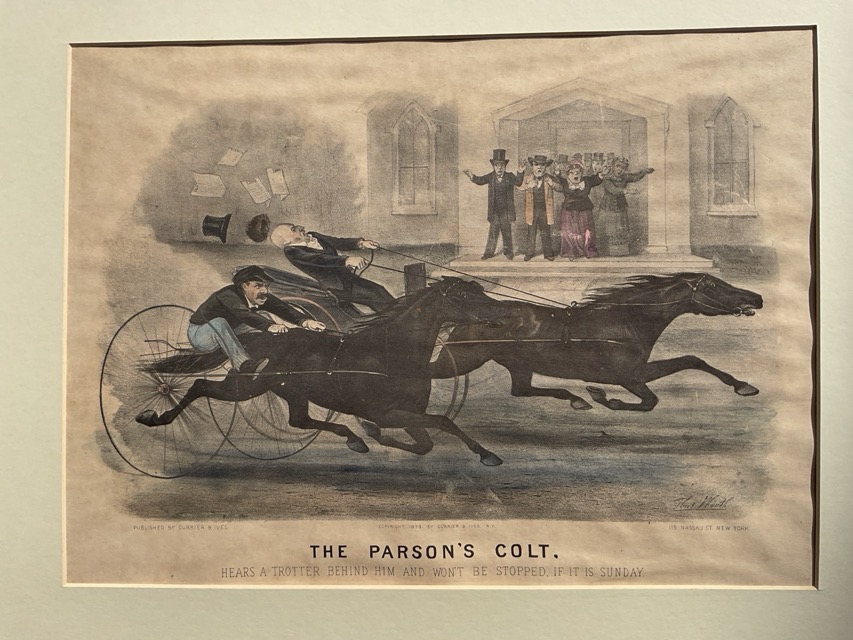 Thomas Worth, coloured prints, a pair, published by Currier & Ives, depicting trotter racing titled The Parsons Colt and The Deacons Mare, after the 1879 original, handcolured & mounted. (15in x 11in) (2)