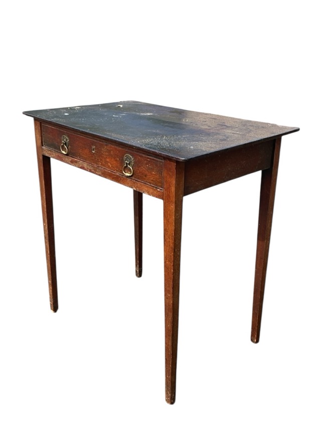 A Georgian mahogany side table with rectangular top above a brass handled frieze drawer, raised on tapering square legs. (30in x 19in x 30in)