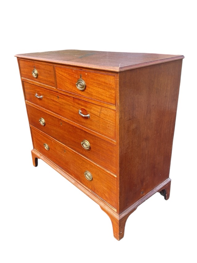A nineteenth century mahogany chest of drawers, with rectangular moulded top above two short and three long drawers, raised on bracket feet. (43in x 20.5in x 39in)