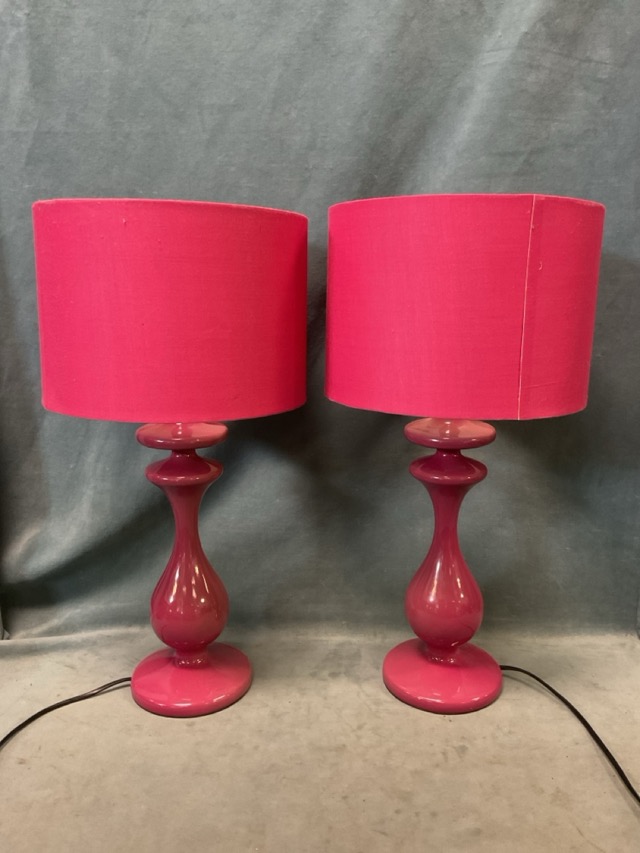 A pair of contemporary glazed tablelamps of baluster form, fitted with cylindrical shades. (2)
