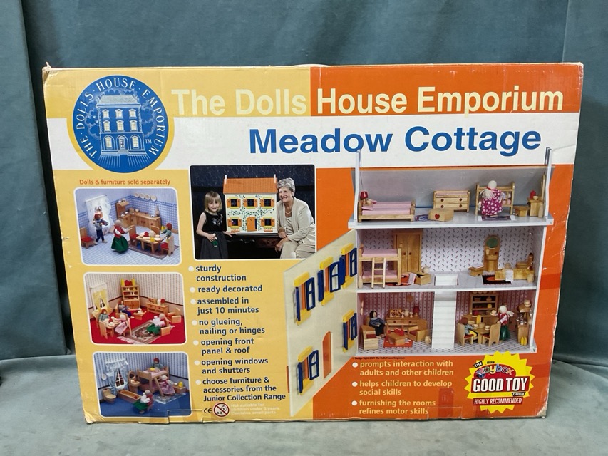 A boxed and unused Dolls House Emporium Meadow Cottage, having opening front panel and roof.