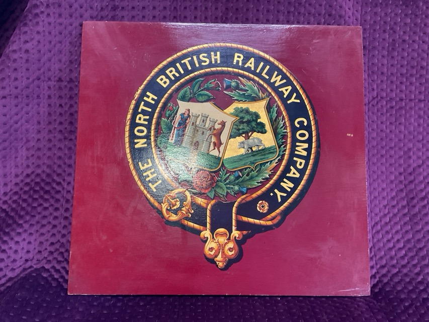 A handpainted and gilded banner sign on maroon ground - The North Britsh Railway Company. (17in x 16in)